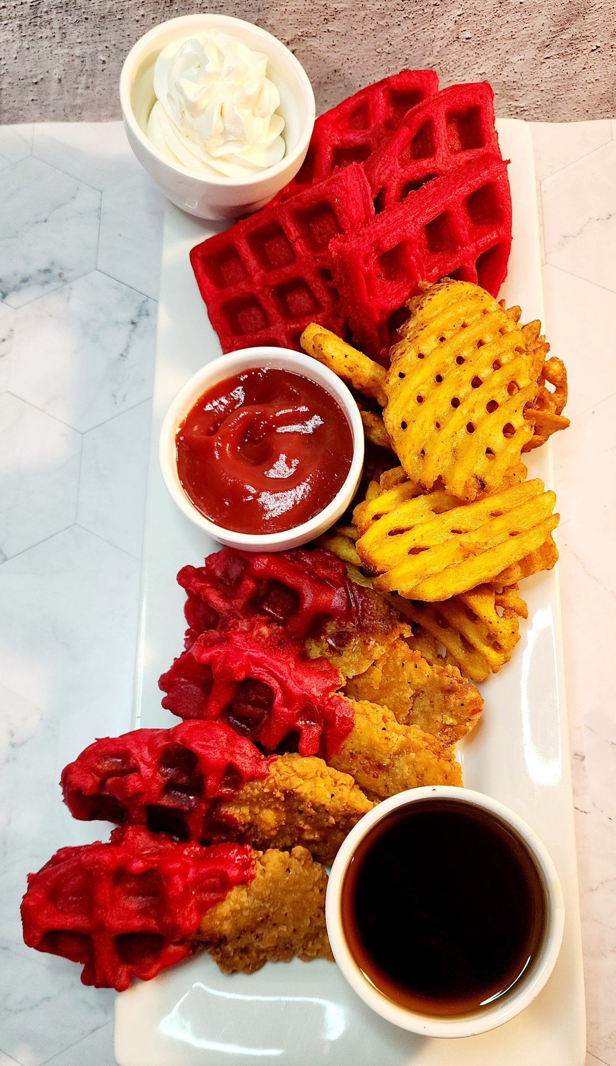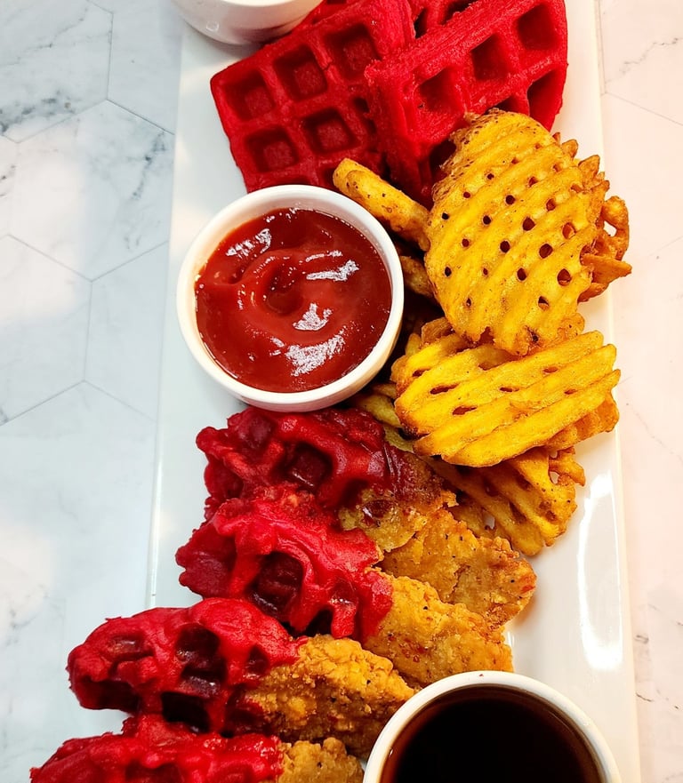 Chicken Tenders & Red Velvet Waffles